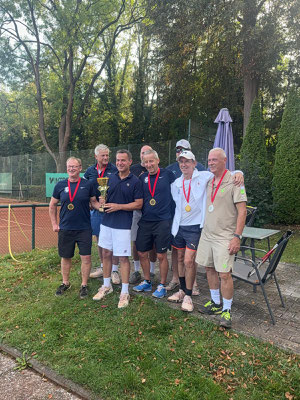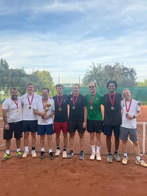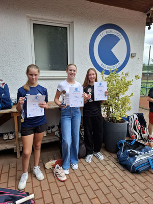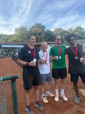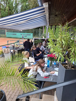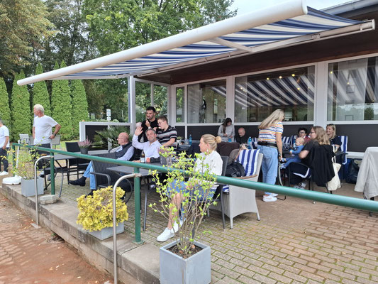 Bei schönstem Sonnenschein endete das rundum gelungene Turnier auf der Terrasse des Clubhauses von Blau-Weiß mit einem kühlem Siegertrunk.